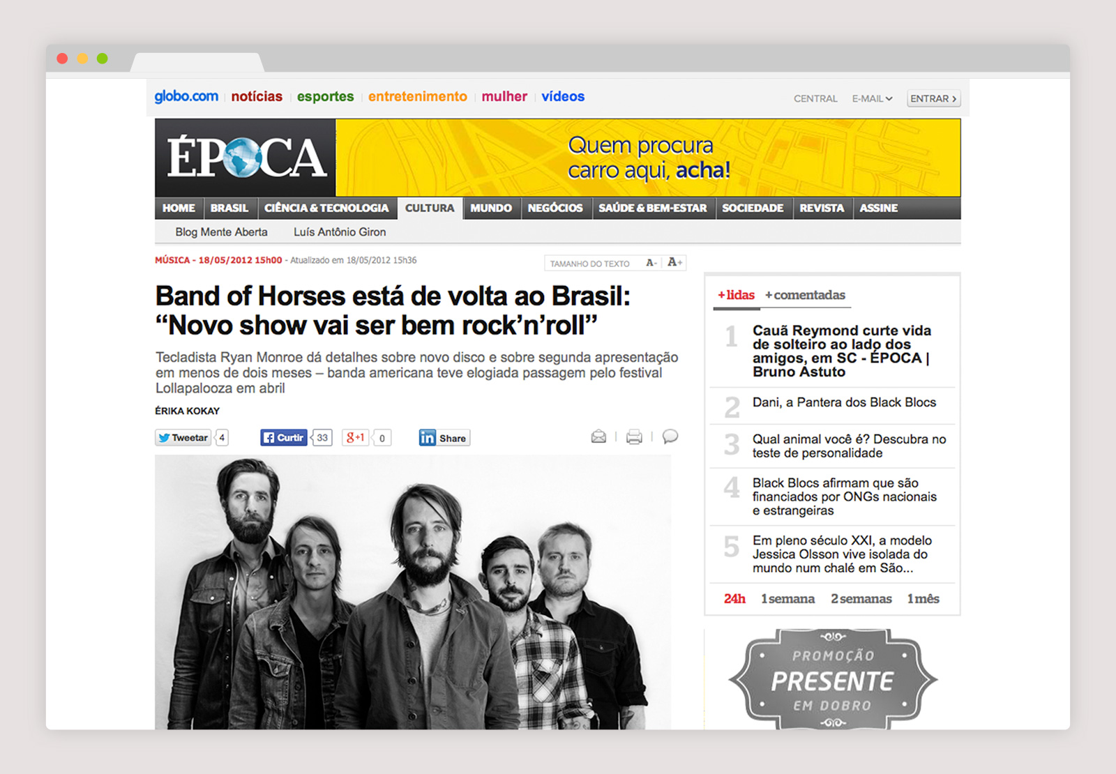 Entrevista com o tecladista da banda americana Band of Horses, sobre o show deles no Brasil em maio de 2012.