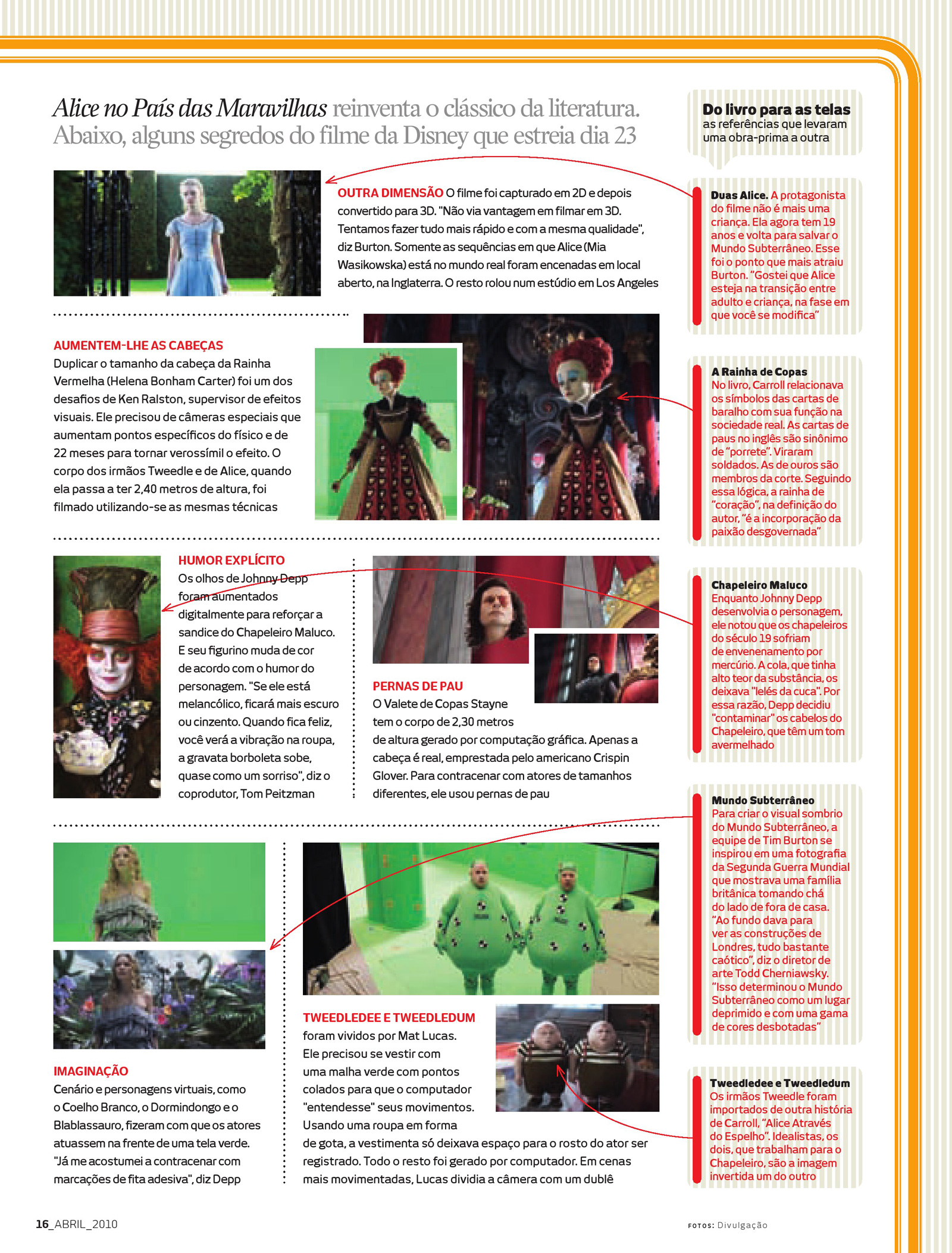 O primeiro filme em 3D de Tim Burton, “Alice no País das Maravilhas”, contou com mais de 2.500 efeitos especiais. Artigo descreve alguns dos segredos tecnológicos por trás do filme.