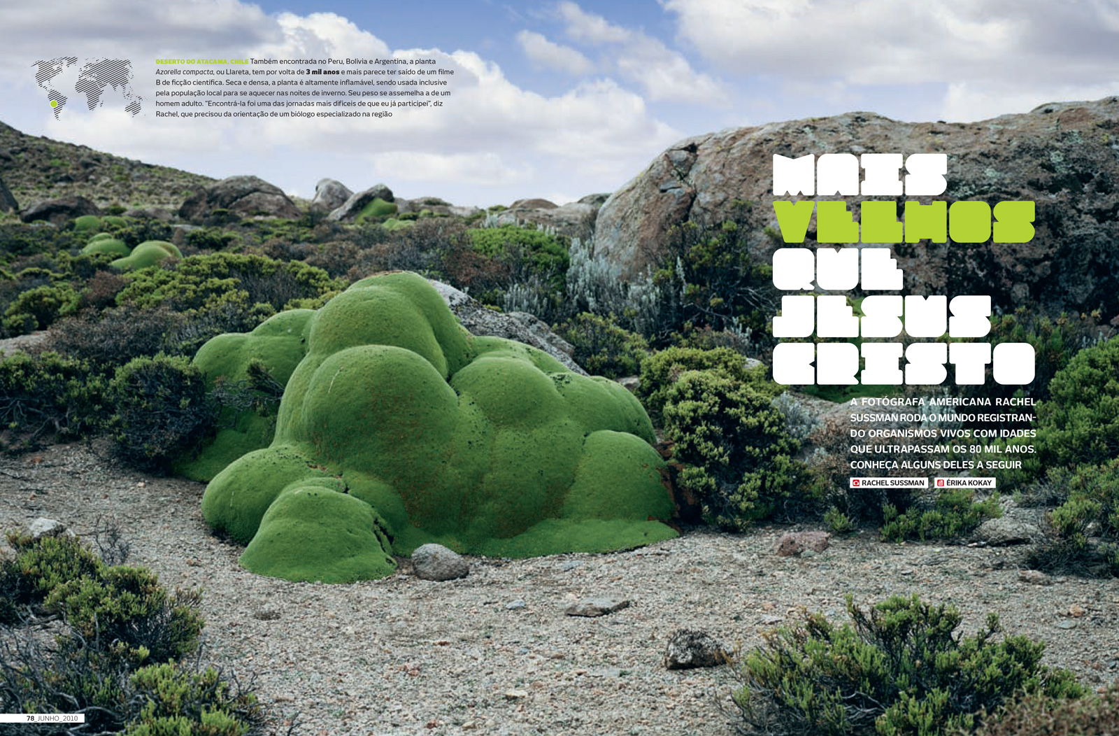 Galeria de fotos expõe o trabalho da fotógrafa americana Rachel Sussman, que roda o mundo registrando seres vivos com mais de 80 mil anos de idade.